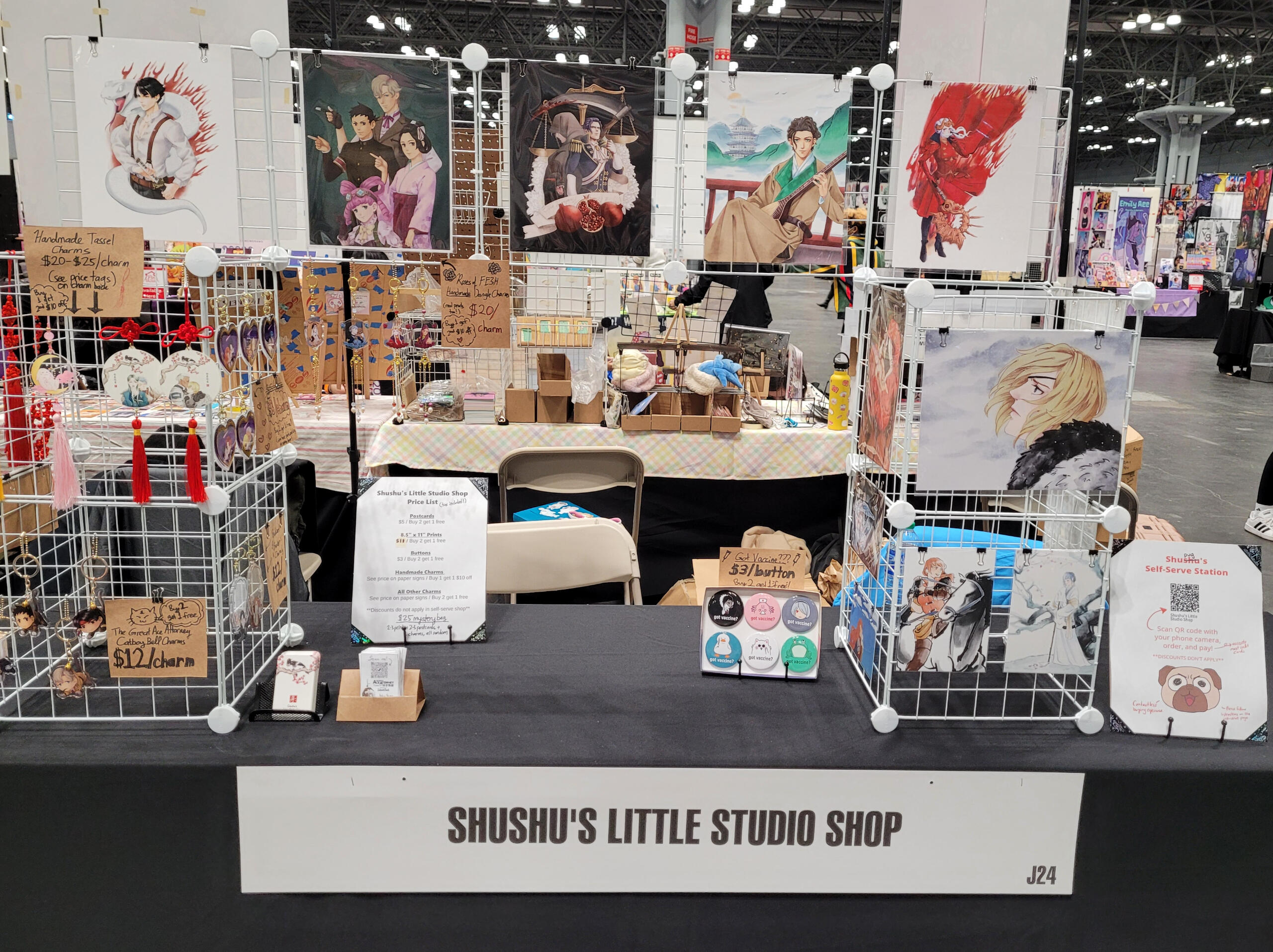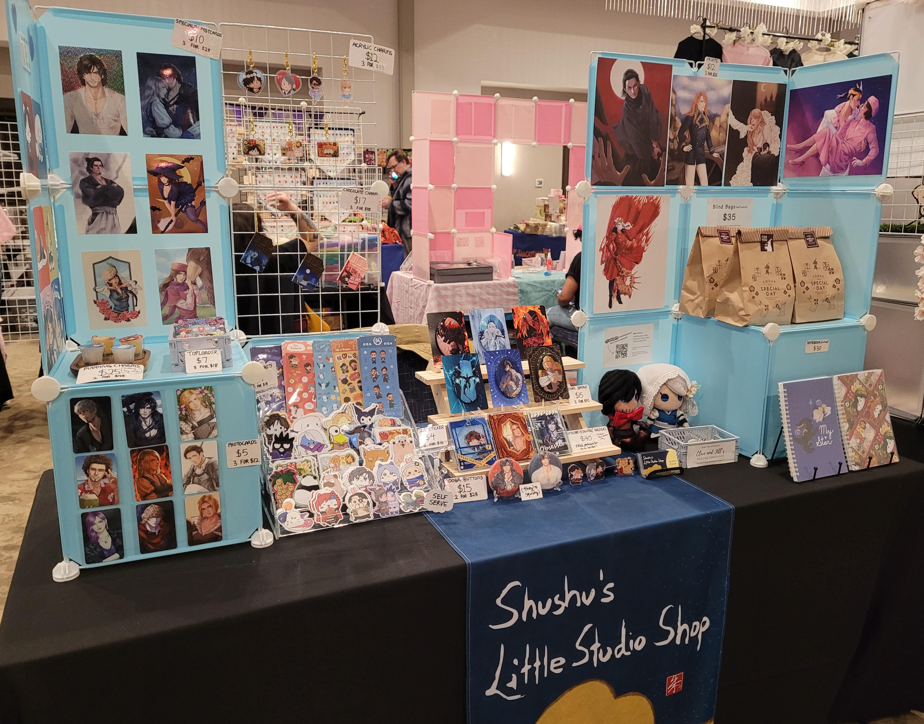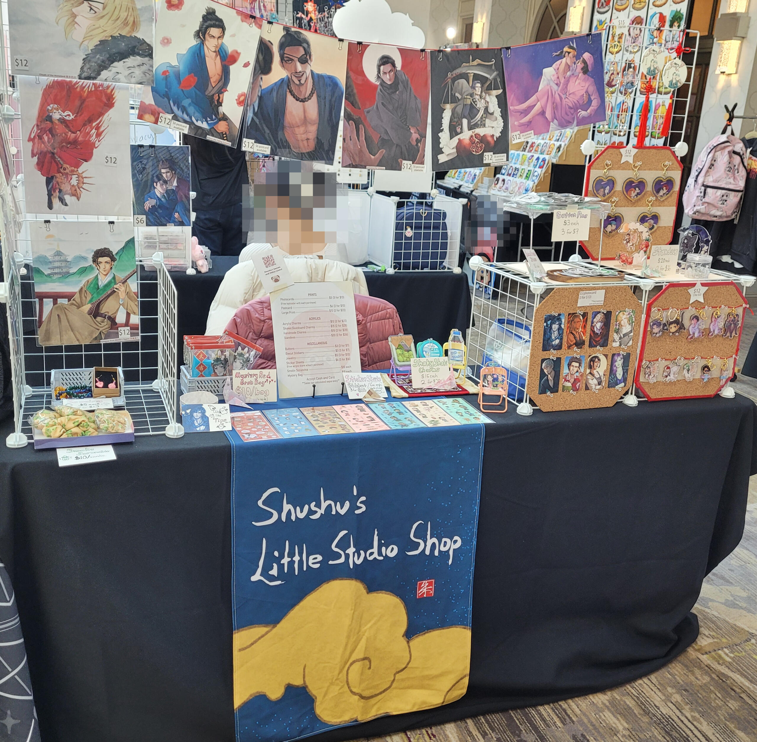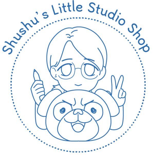 Shu is an artist and merch designer who brings her passion for fandom culture to life with unique art and merchandise.The logo represents the 2 facets of Shu's art style: The human stands for the detailed and elegant style stemming from years of self-learning; the pug stands for the cute and frequently dopey style found in much of Shu's merchandise.